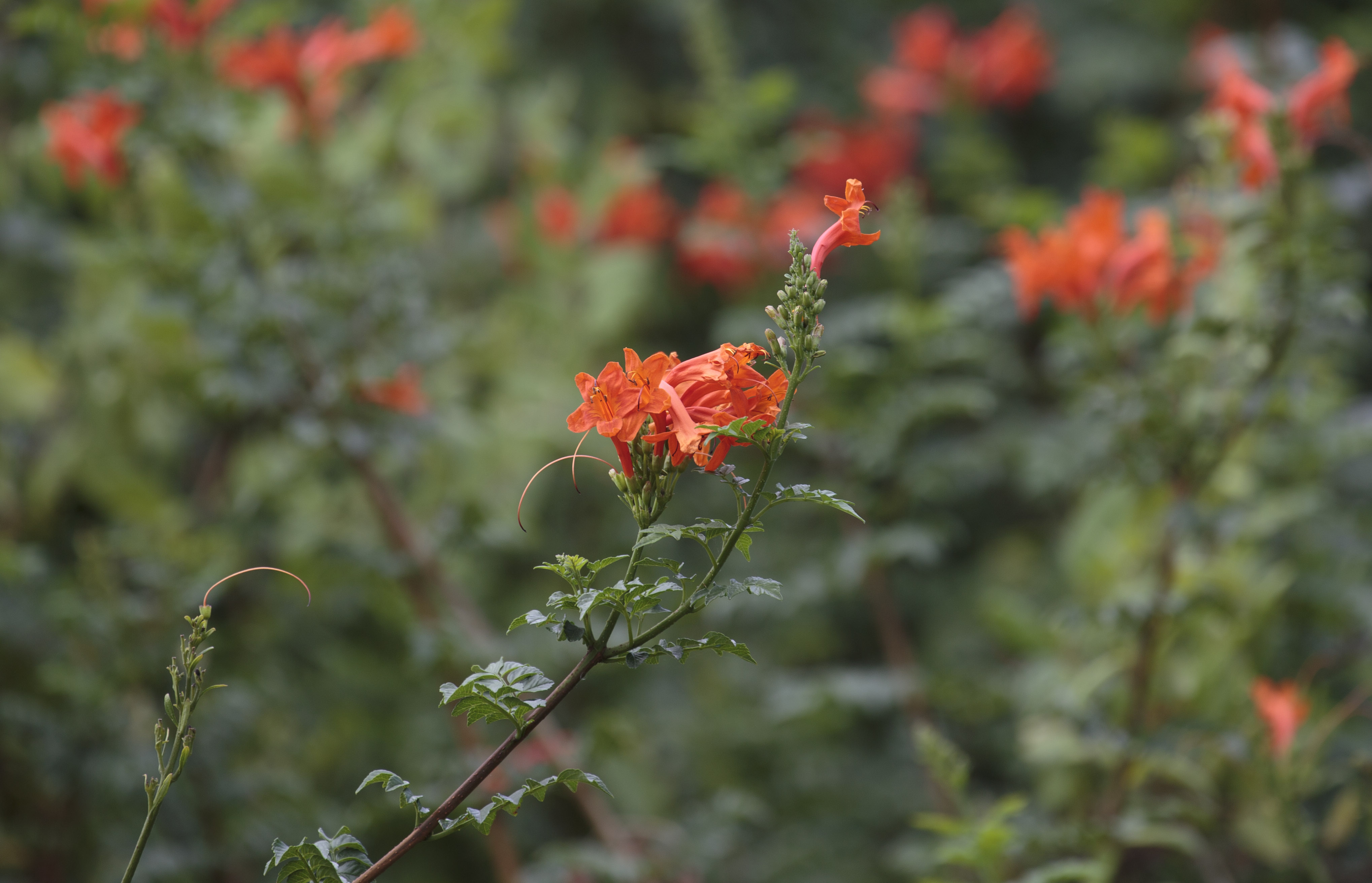 Another shot in the field of flowers, wide aperture. This time the background includes other flowers, showing that even with the same hue in the background the wide aperture directs the viewer's attention to the subject in the foreground.